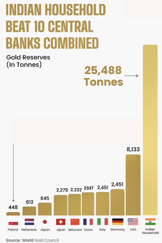 Indian households collectively hold more gold than the top 10 central banks combined.